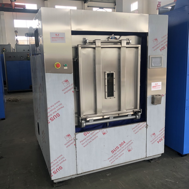 首先,從設(shè)備上采取最先進(jìn)的衛(wèi)生隔離式洗衣機(jī)。背靠背的兩道機(jī)門,使污染布草的裝載和潔凈布草的卸載從不同的門進(jìn)出,從源頭上避免了交叉感染。